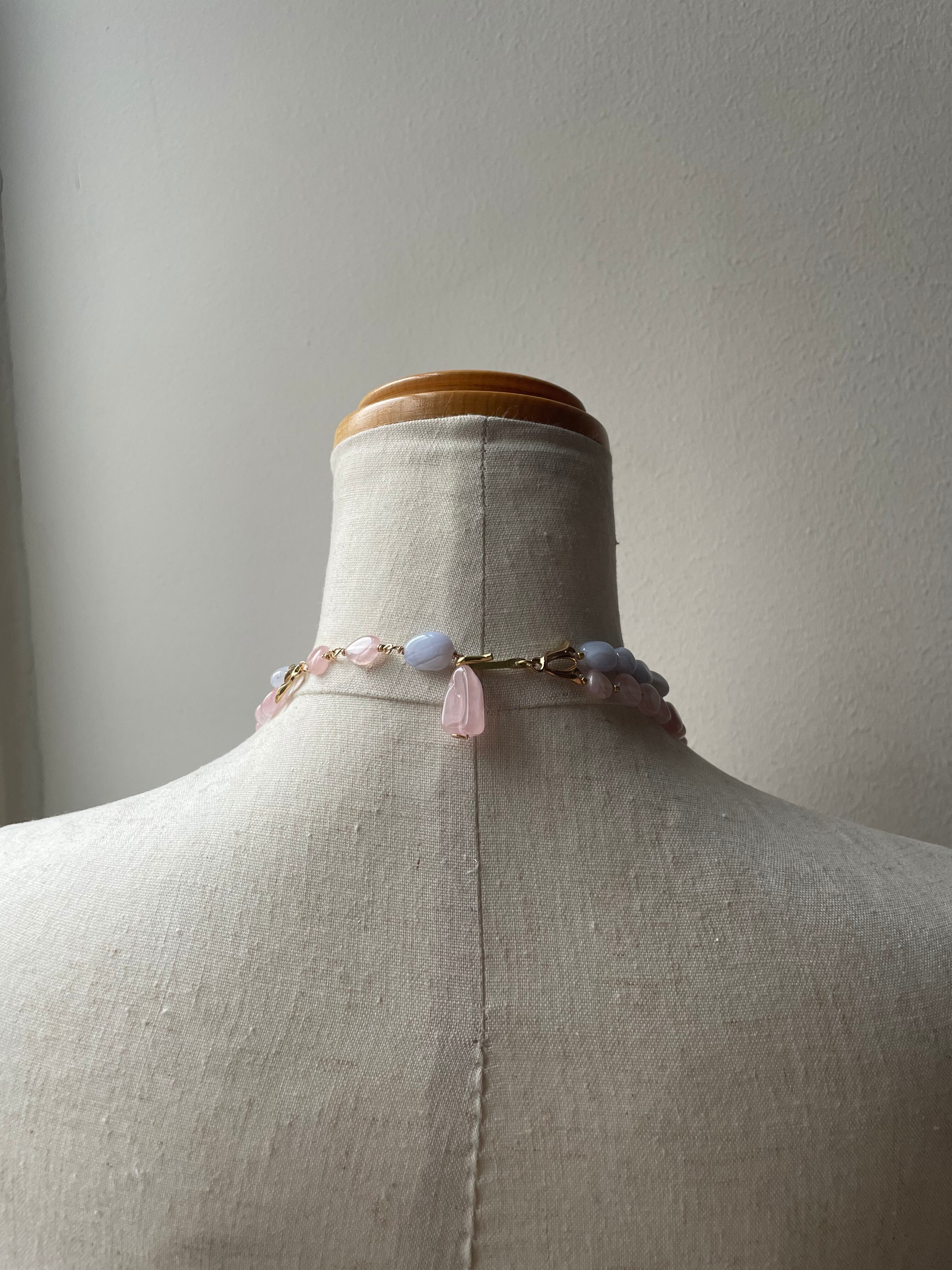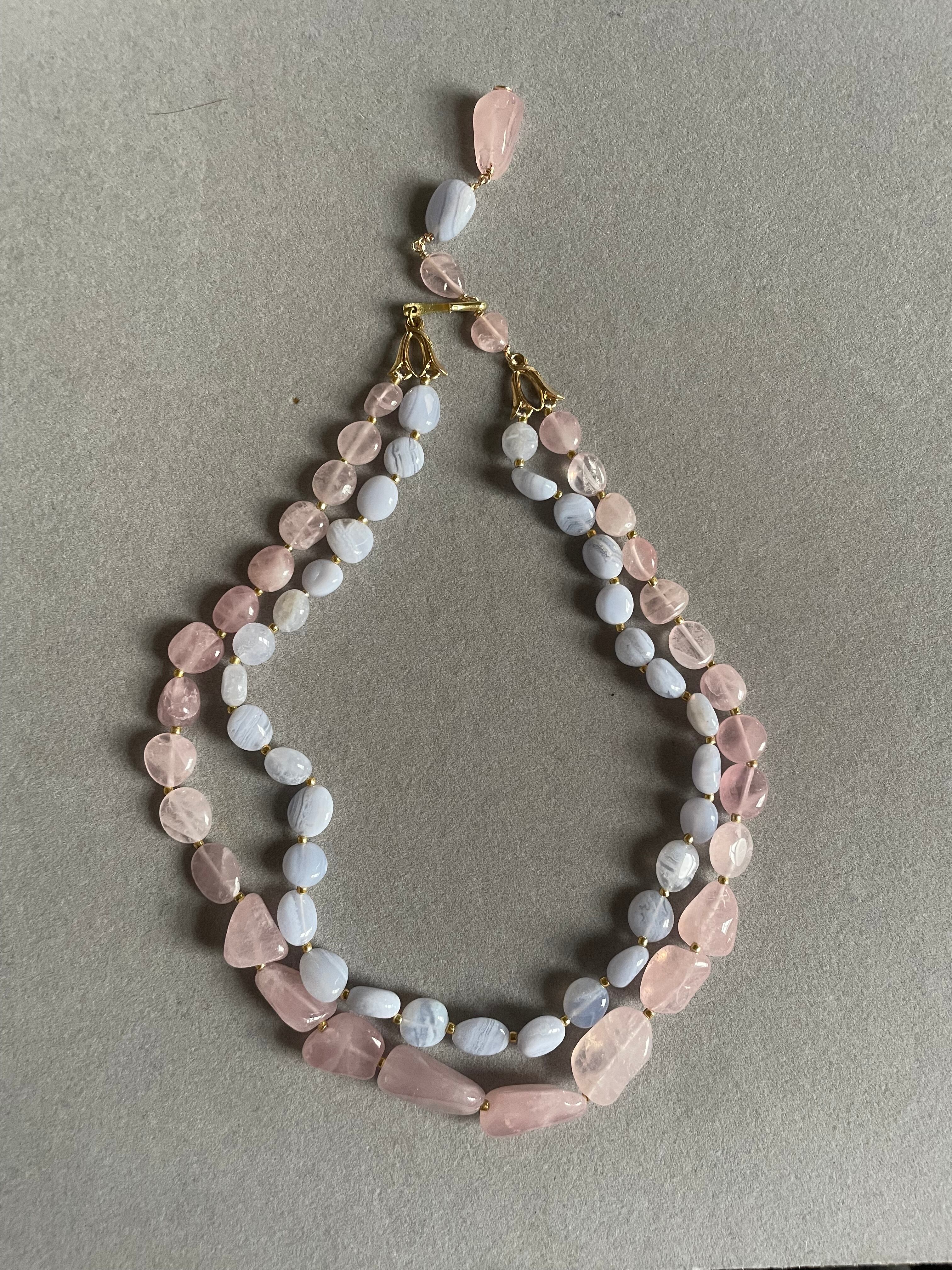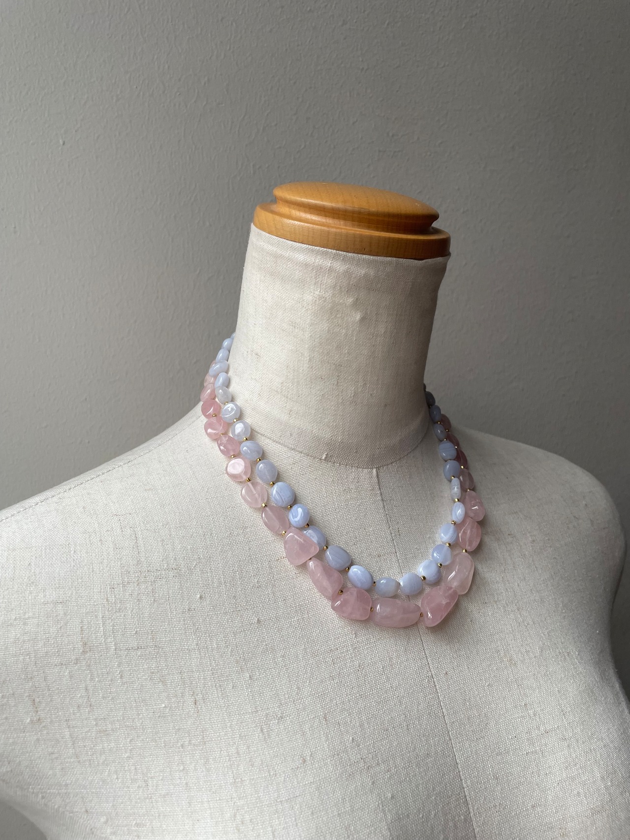 天然石ローズクォーツ×ブルーレース 2連ネックレス