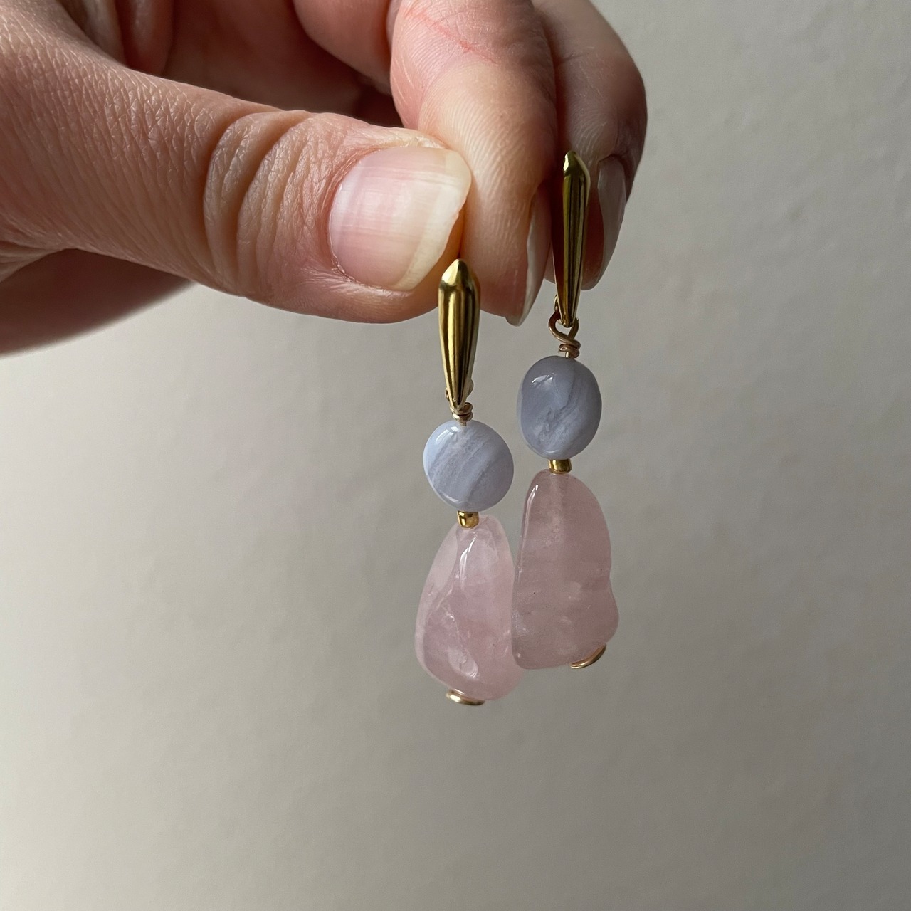 ローズクォーツとブルーレースの優しい色合わせです♪春色のお洋服と合わせられる色合い♡
