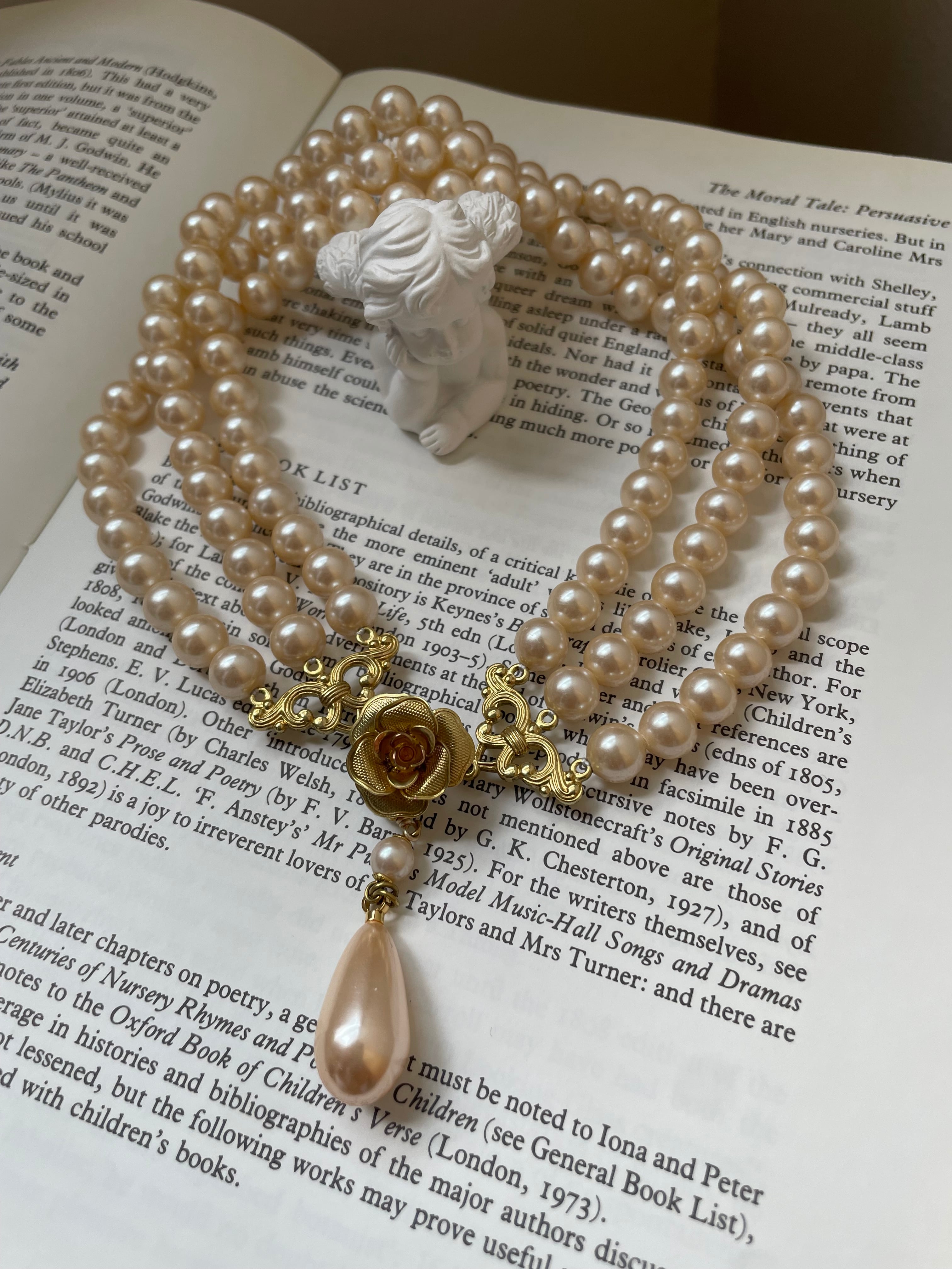 ロココの時代の貴婦人がよく付けているシンプルなパールの連です。意外とその時代を再現した映画を見るとこのようなパールが多いので作ってみたくなりました♡