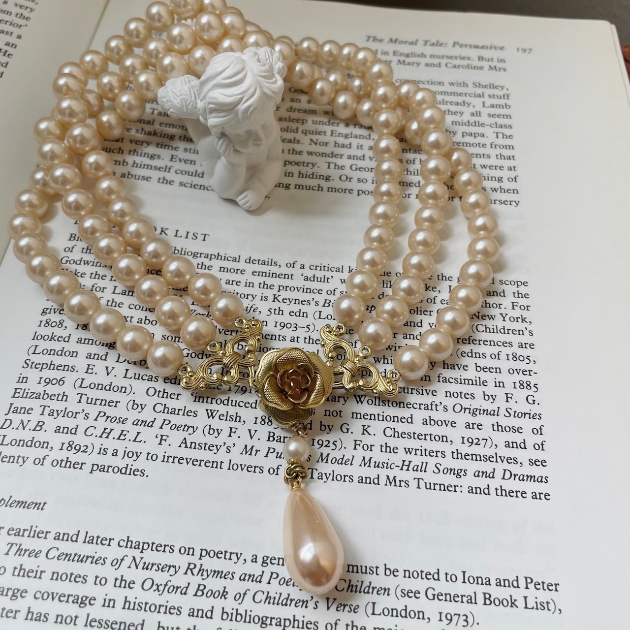 ガラスパールがよりアンティーク感を演出。