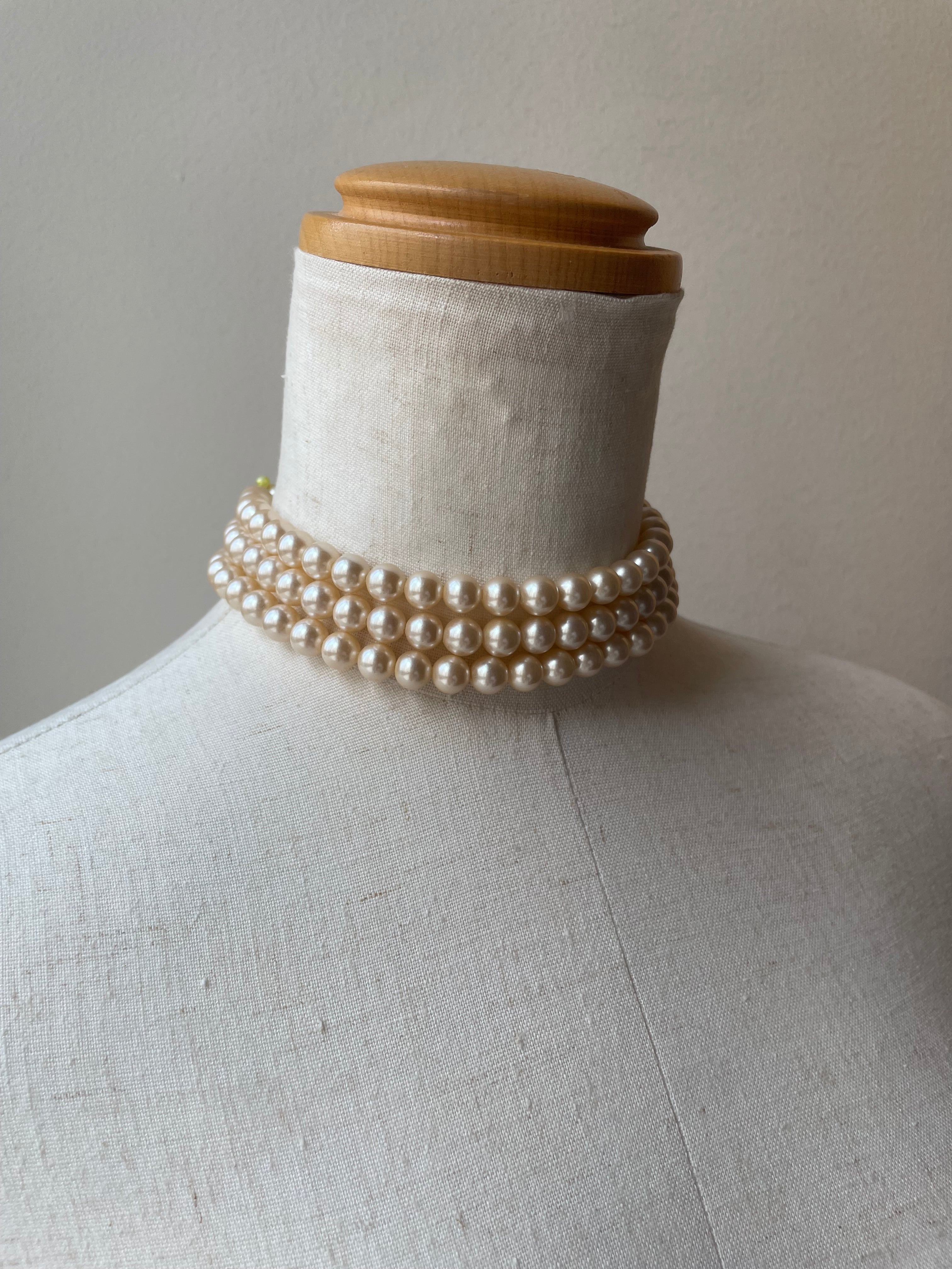 ロココの時代の貴婦人のネックレスをイメージした3連のネックレス。首にタイトにフィットするように身につけていただけると嬉しいです。前後2WAYのデザインです。