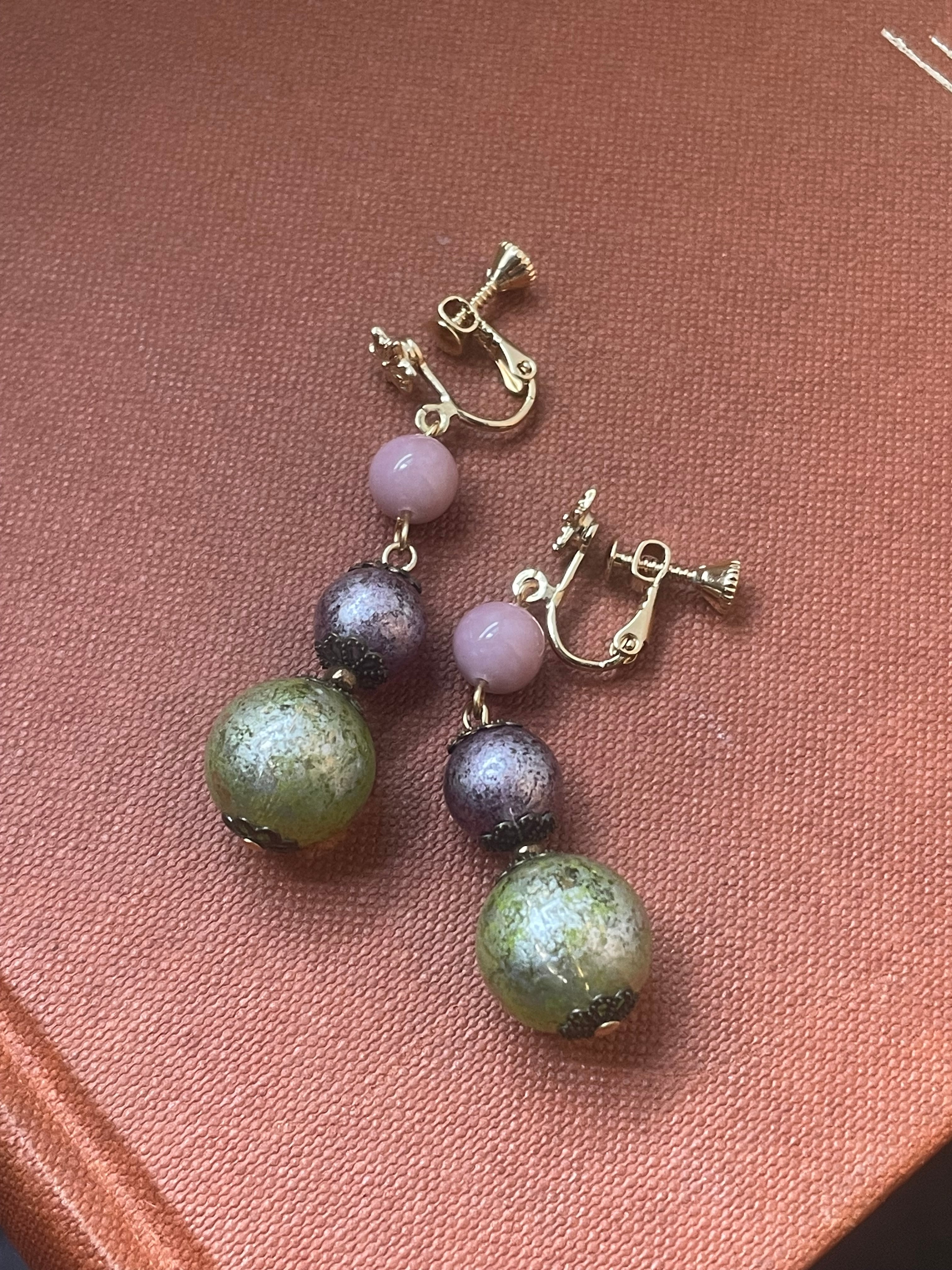 アクリルビーズ3色イヤリング