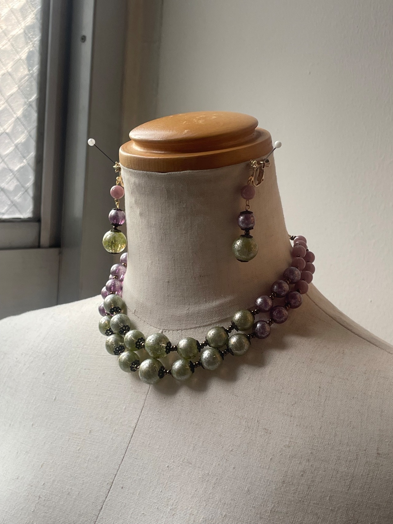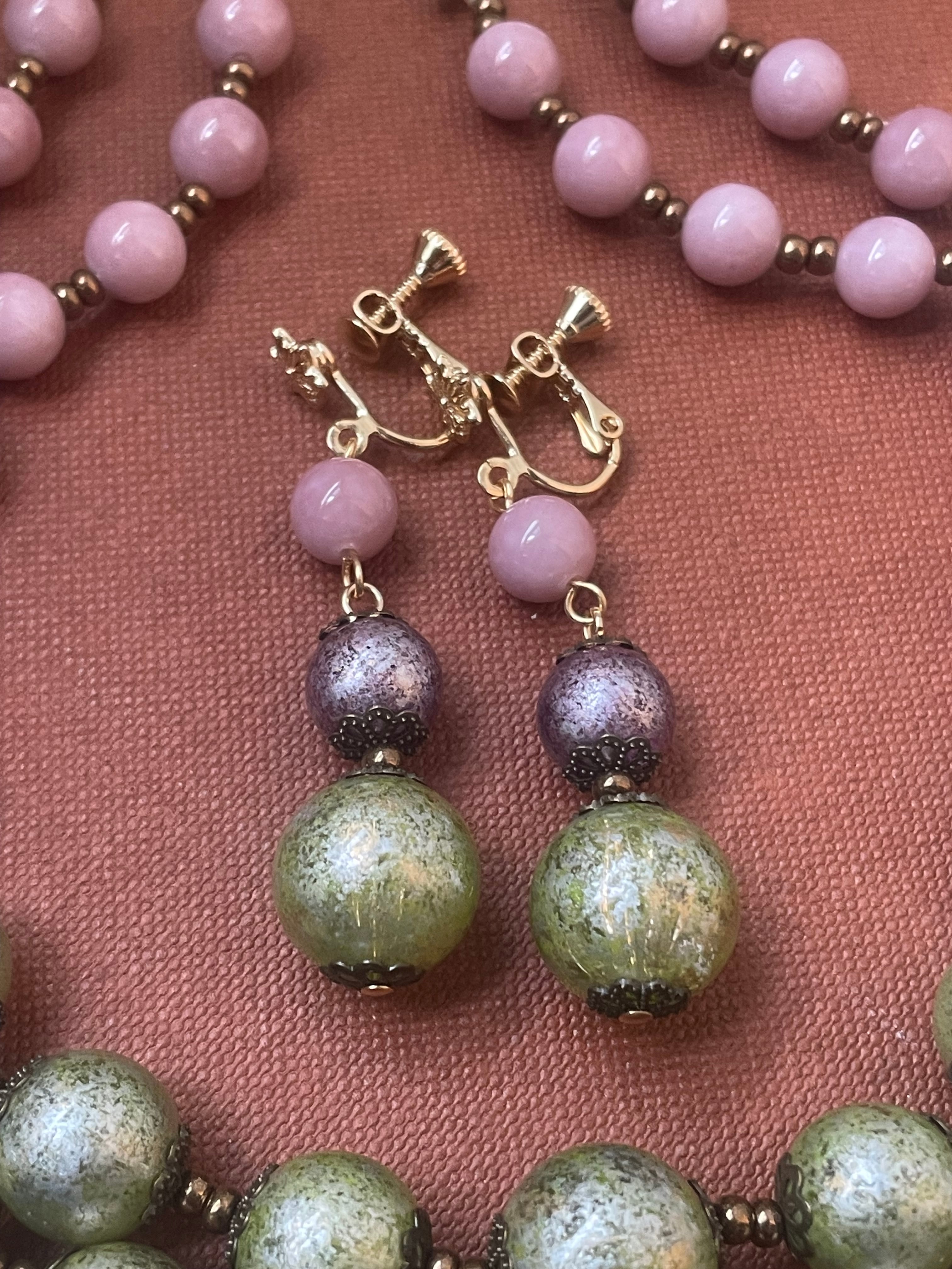 アクリルビーズ3色2連ネックレスのセットが必要な方へお作りしました✨