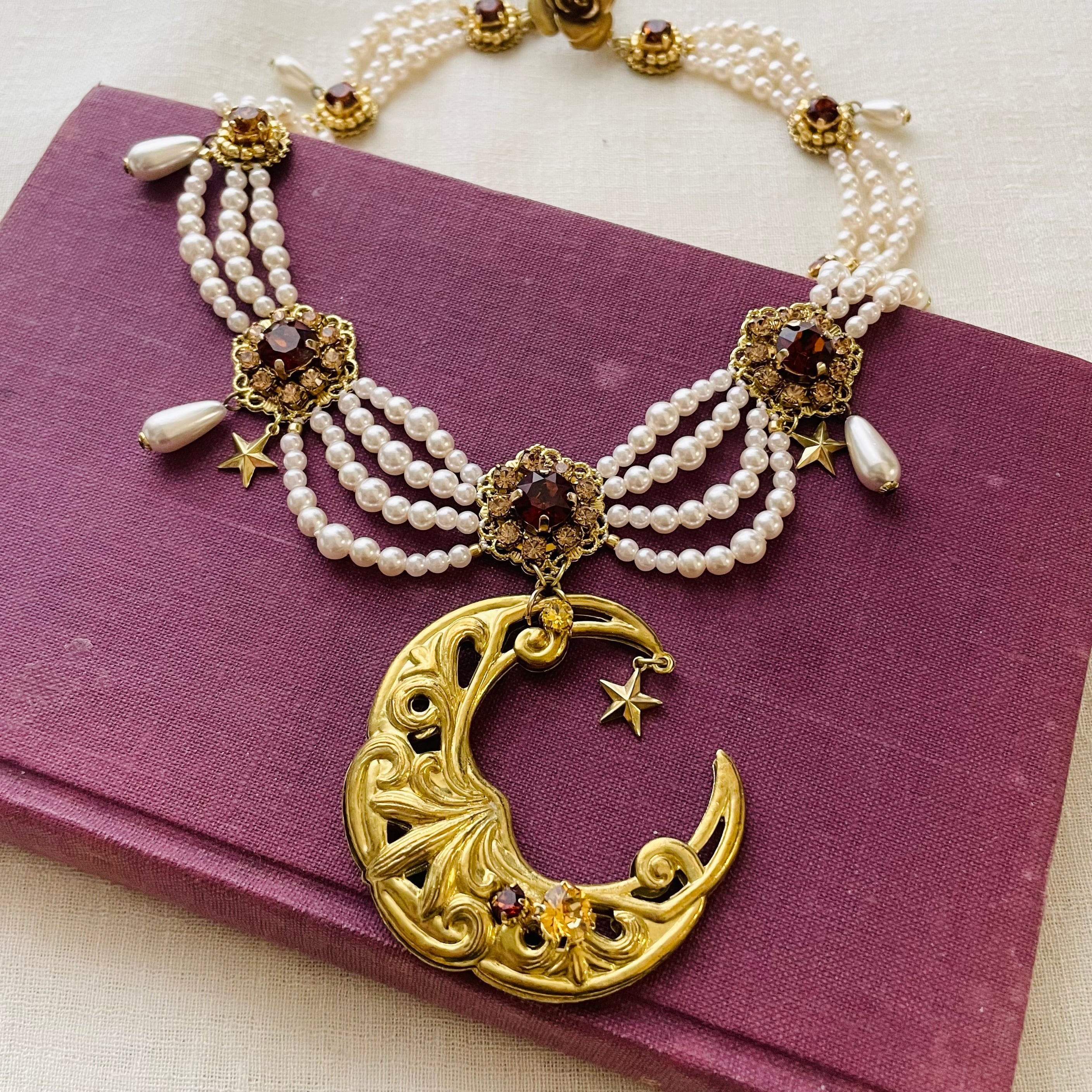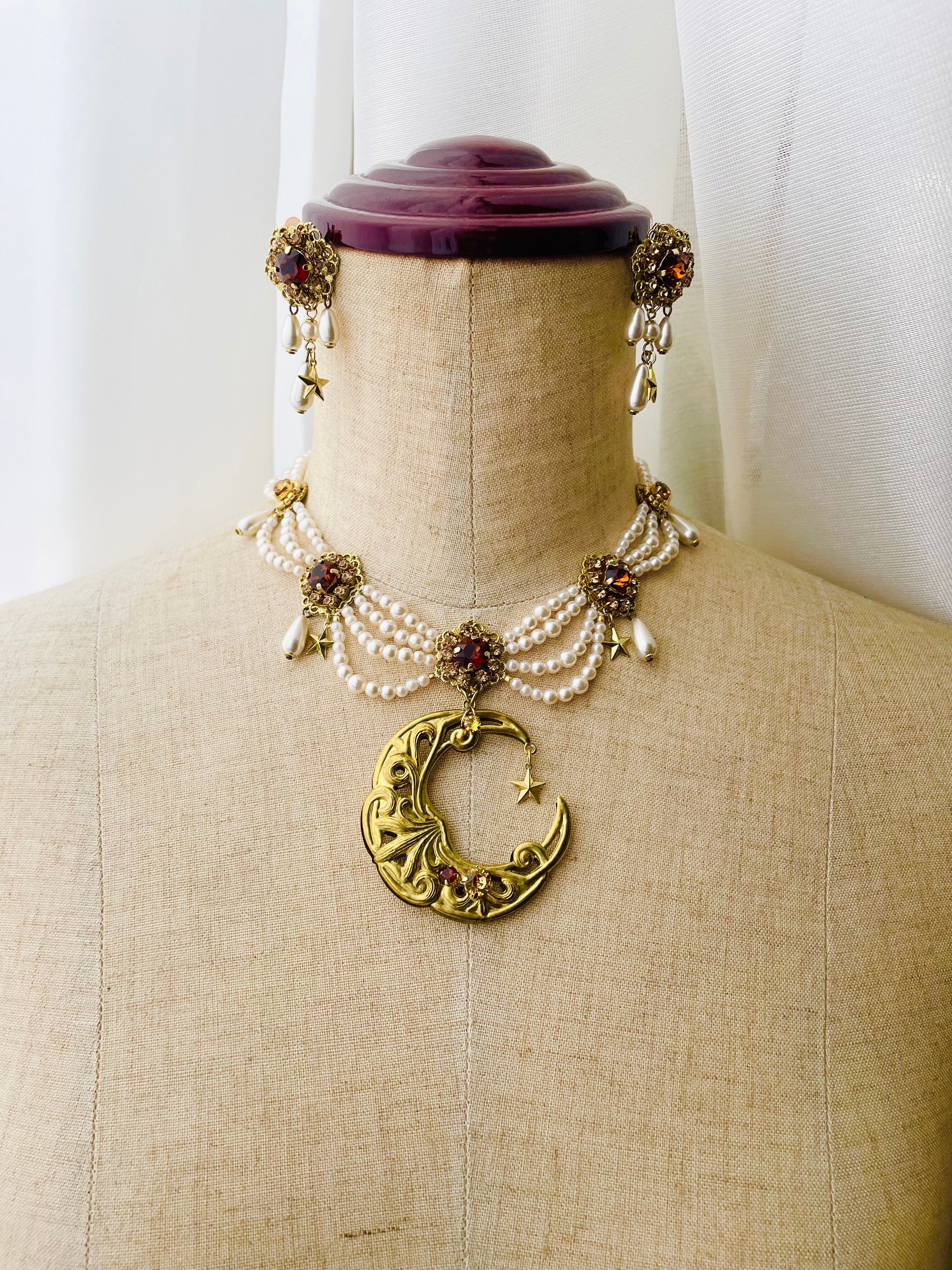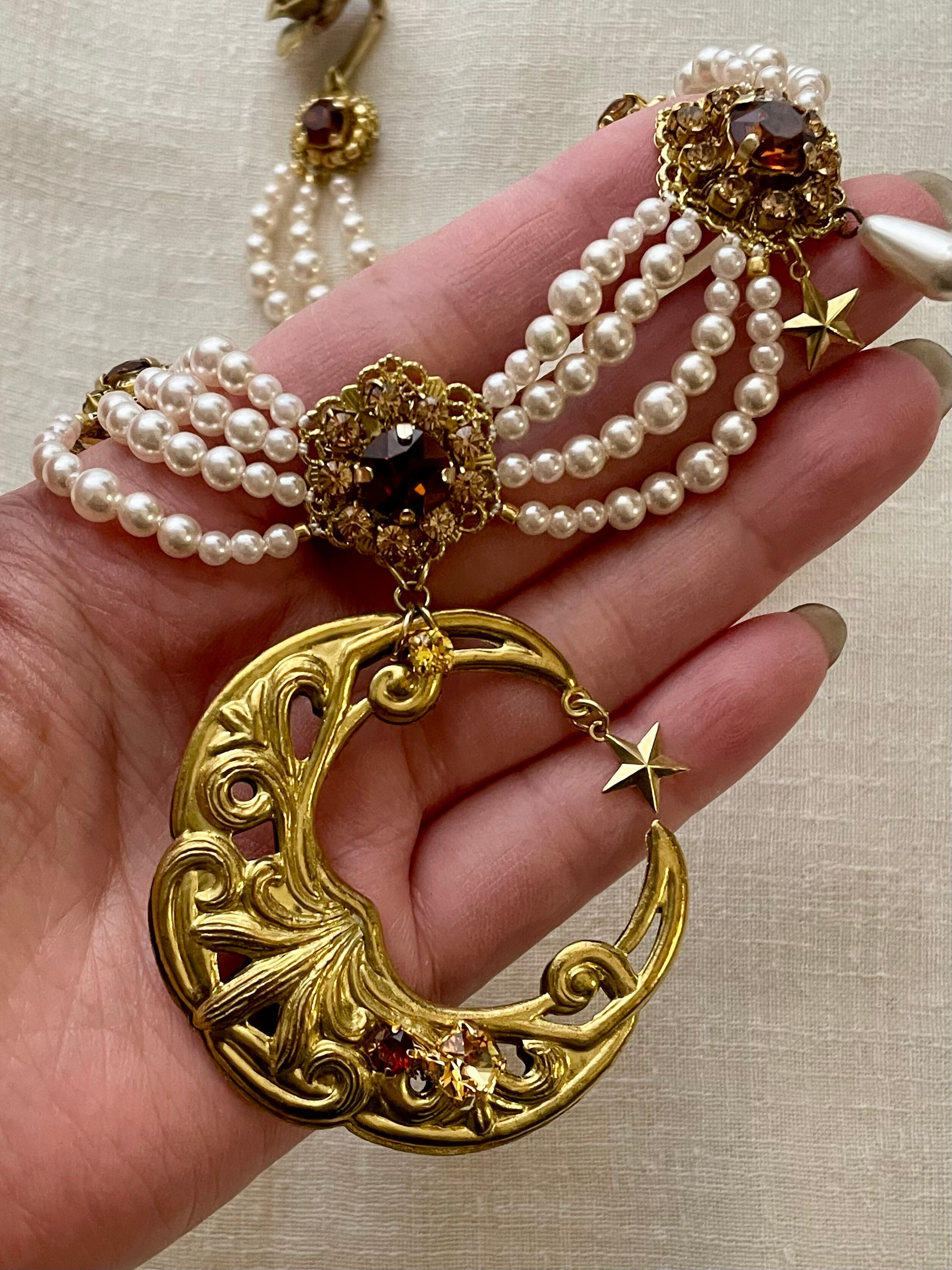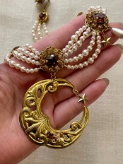 アンティークなジュエリーで定番のシルエットの真ん中にインパクトのある月のモチーフを。