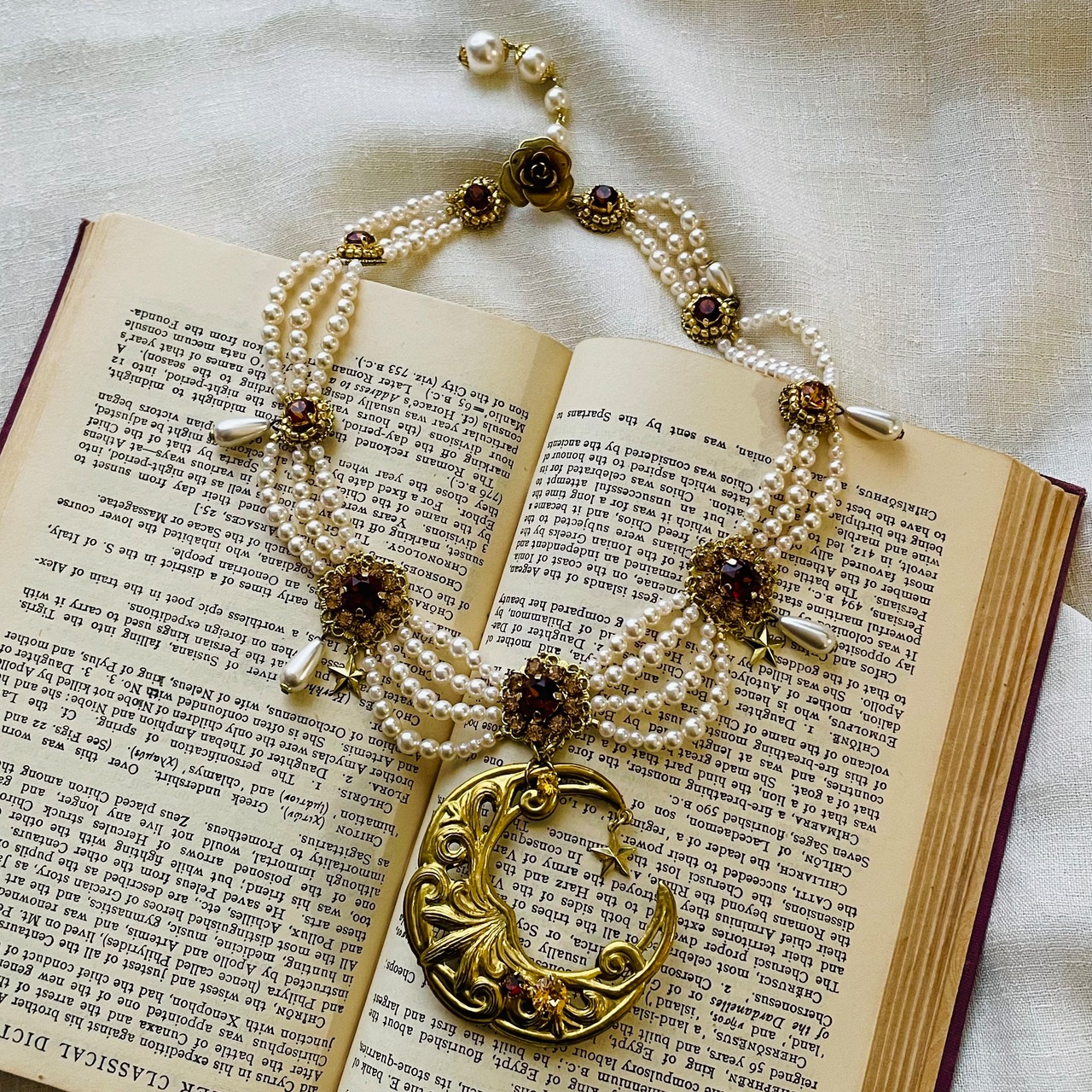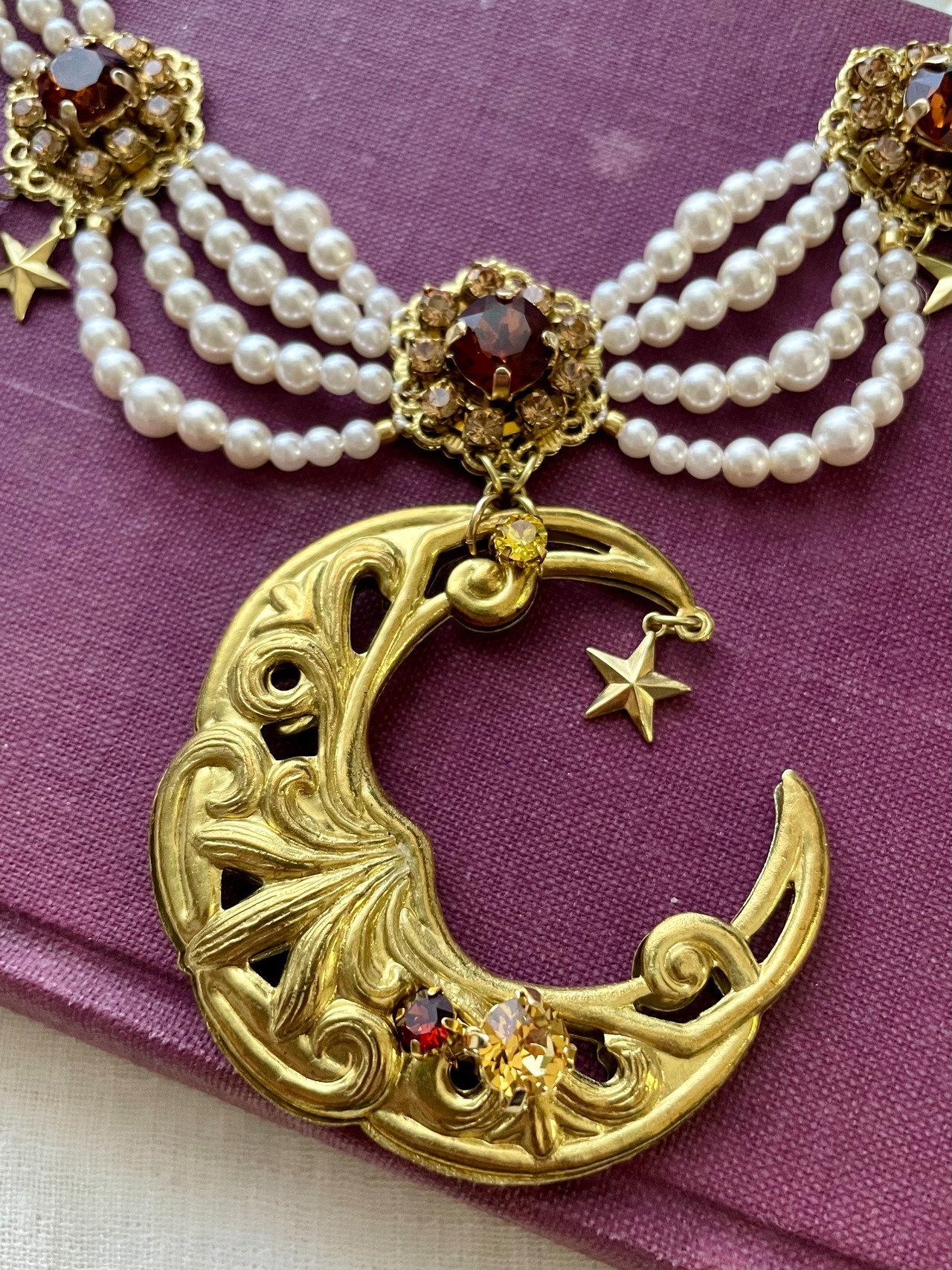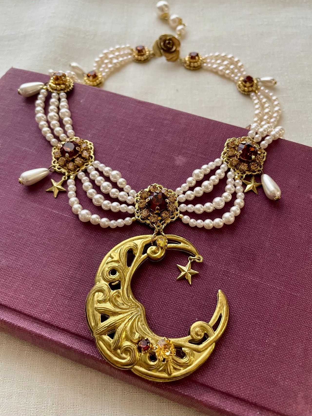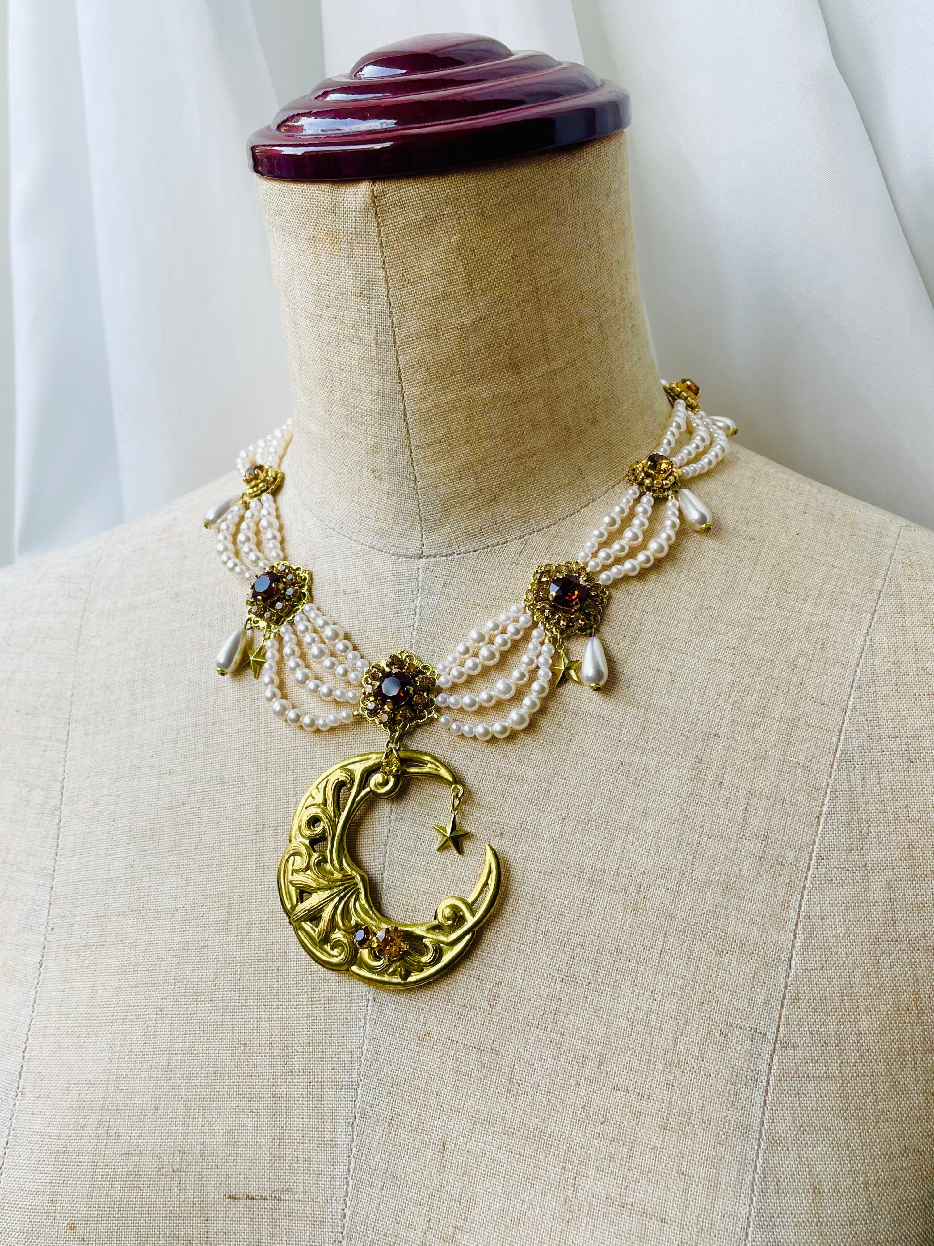 アンティークなジュエリーで定番のシルエットの真ん中にインパクトのある月のモチーフを。