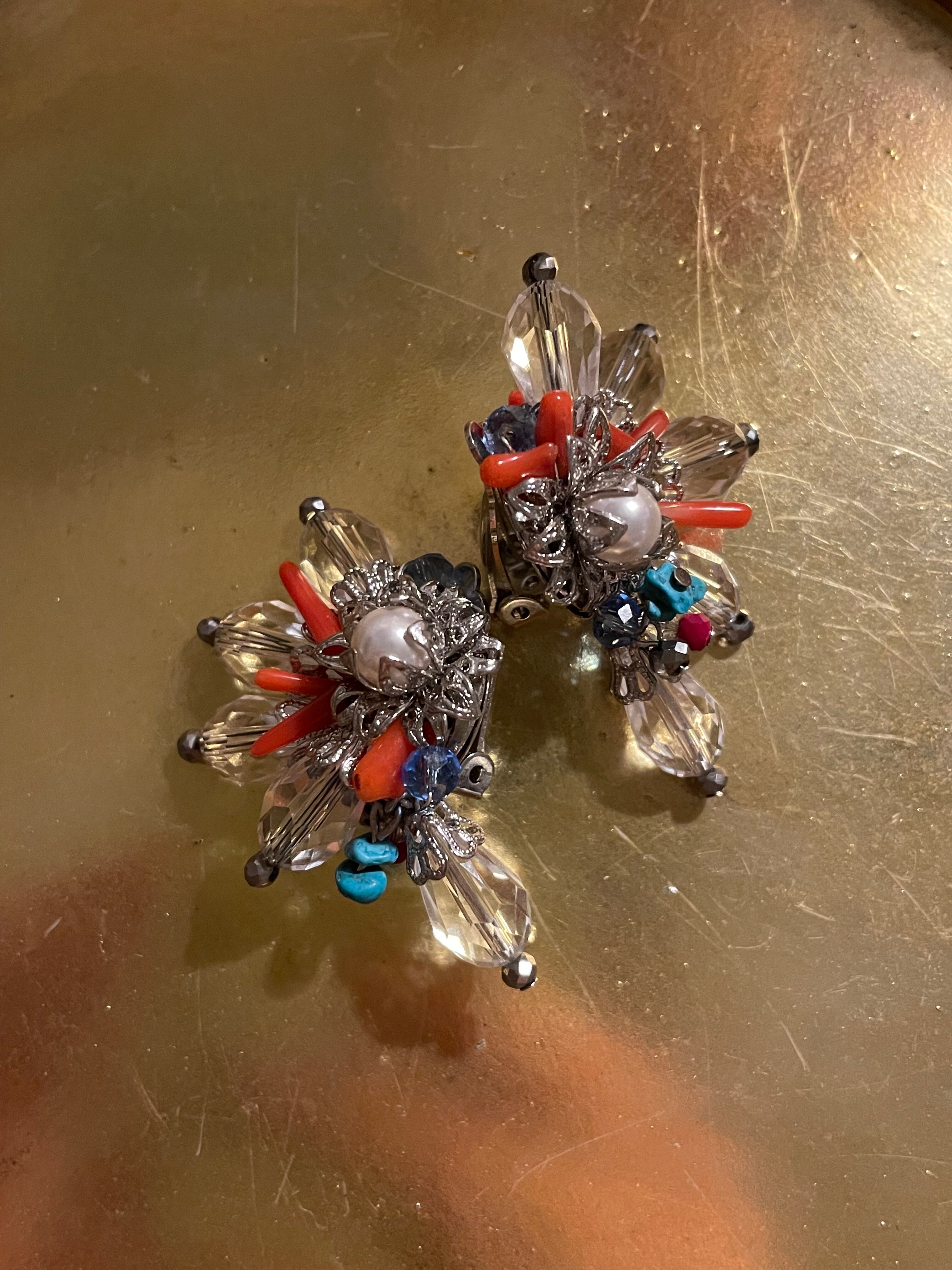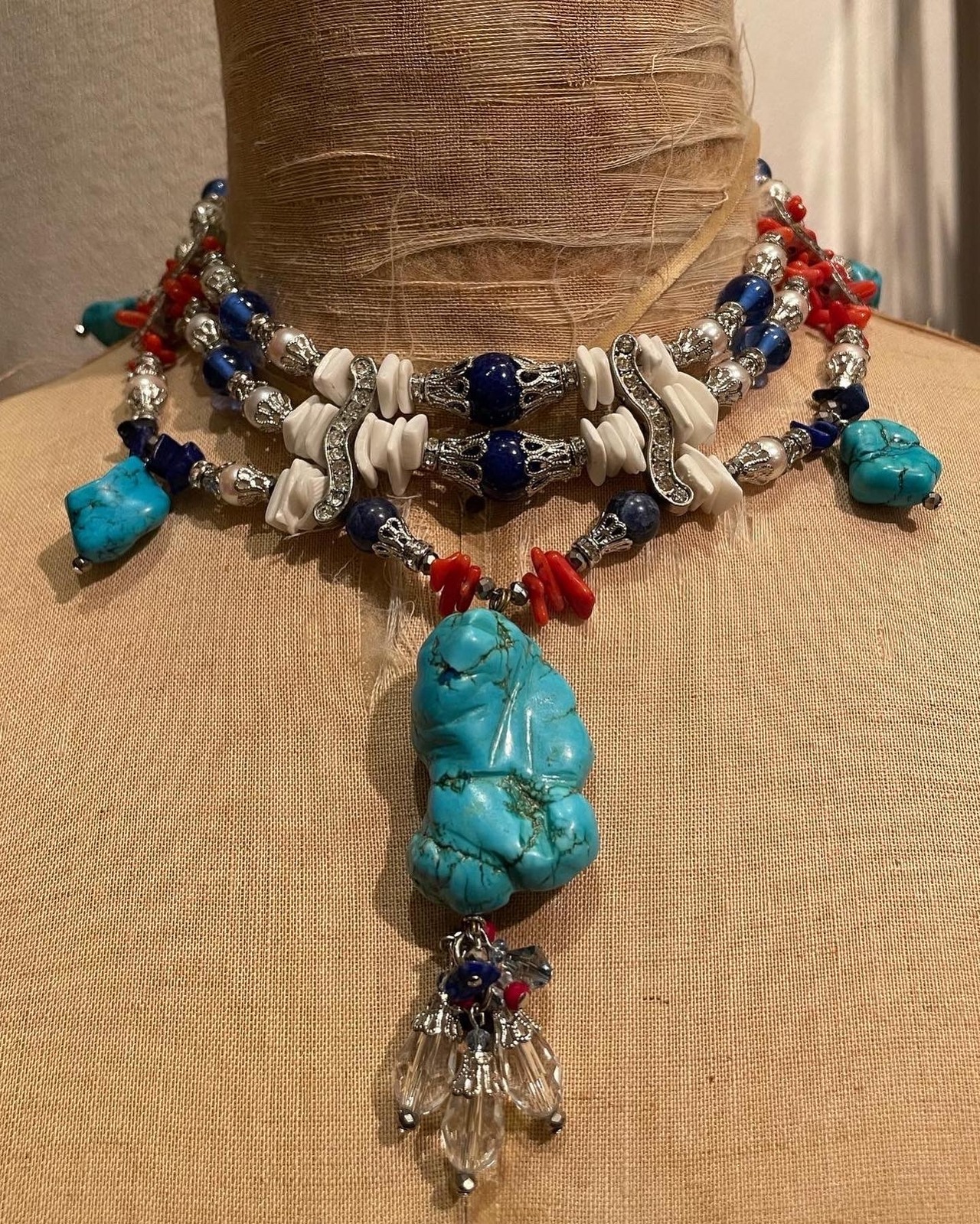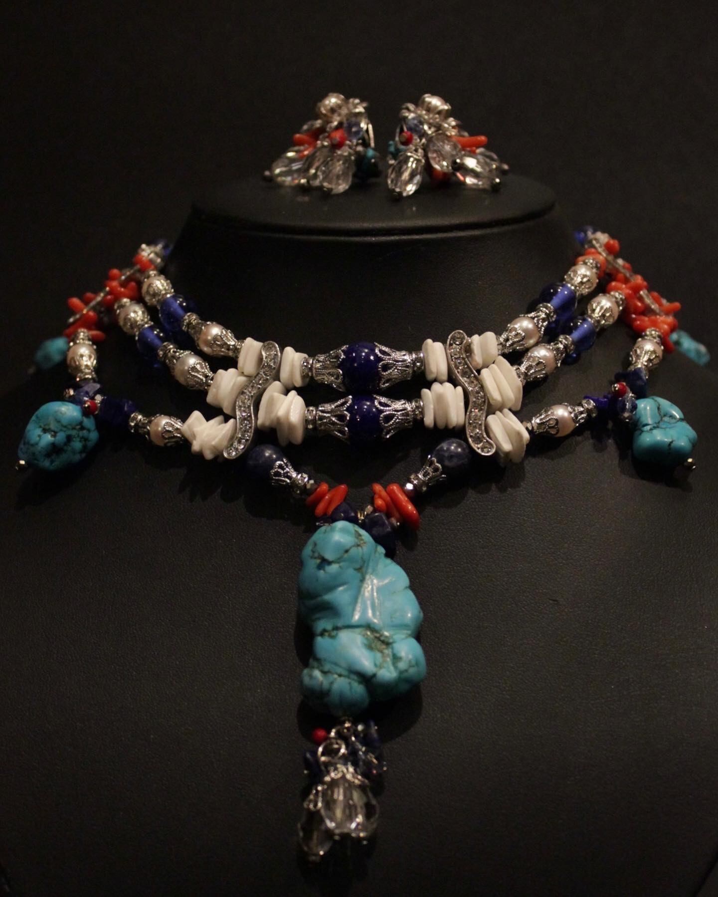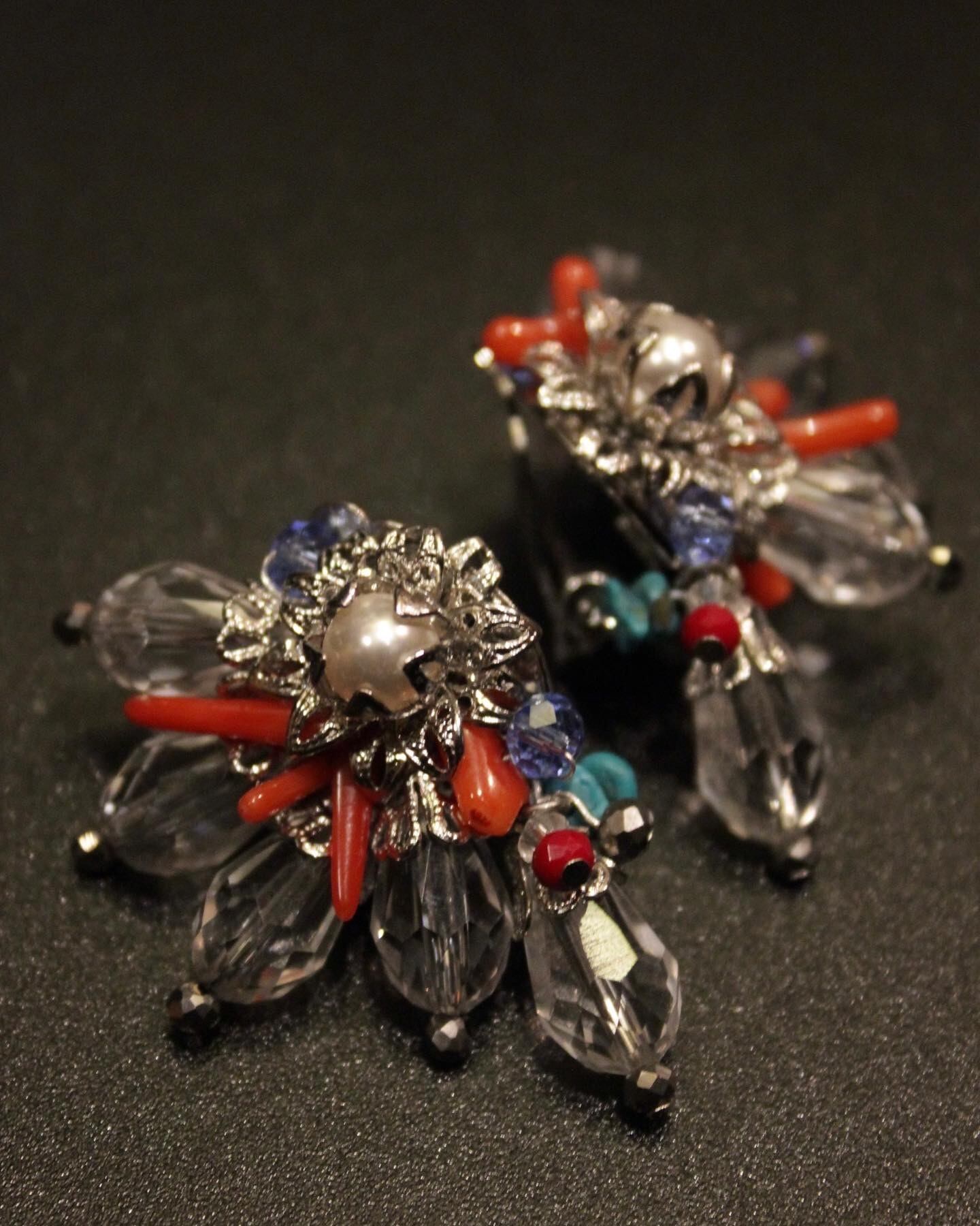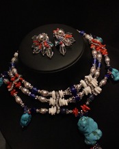 大地の素材であるターコイズ、白貝のビーズ。遠い異国のガラスビーズ(ジャパンビンテージ)そして、憧れの海の素材であるサンゴと本真珠。