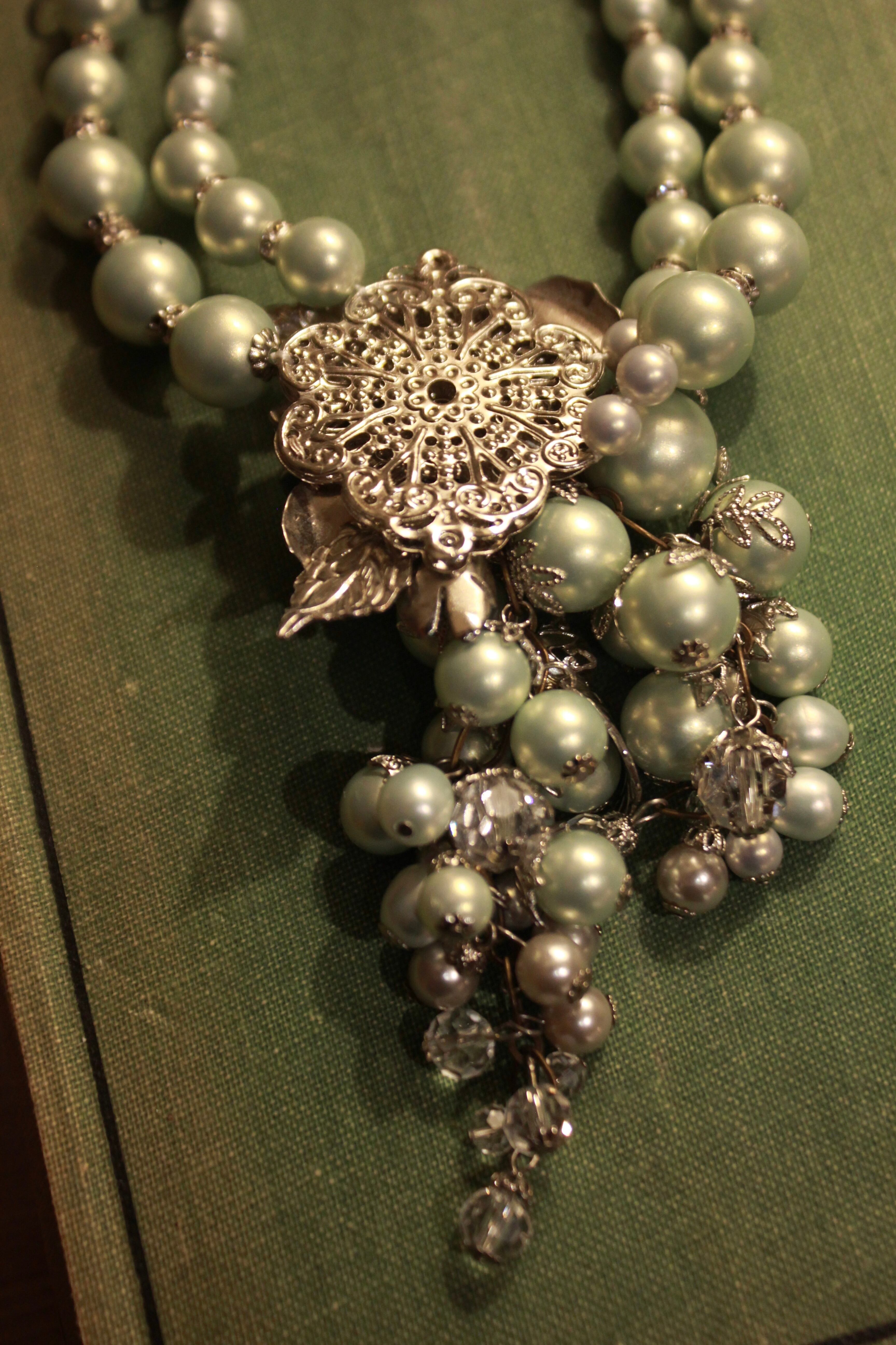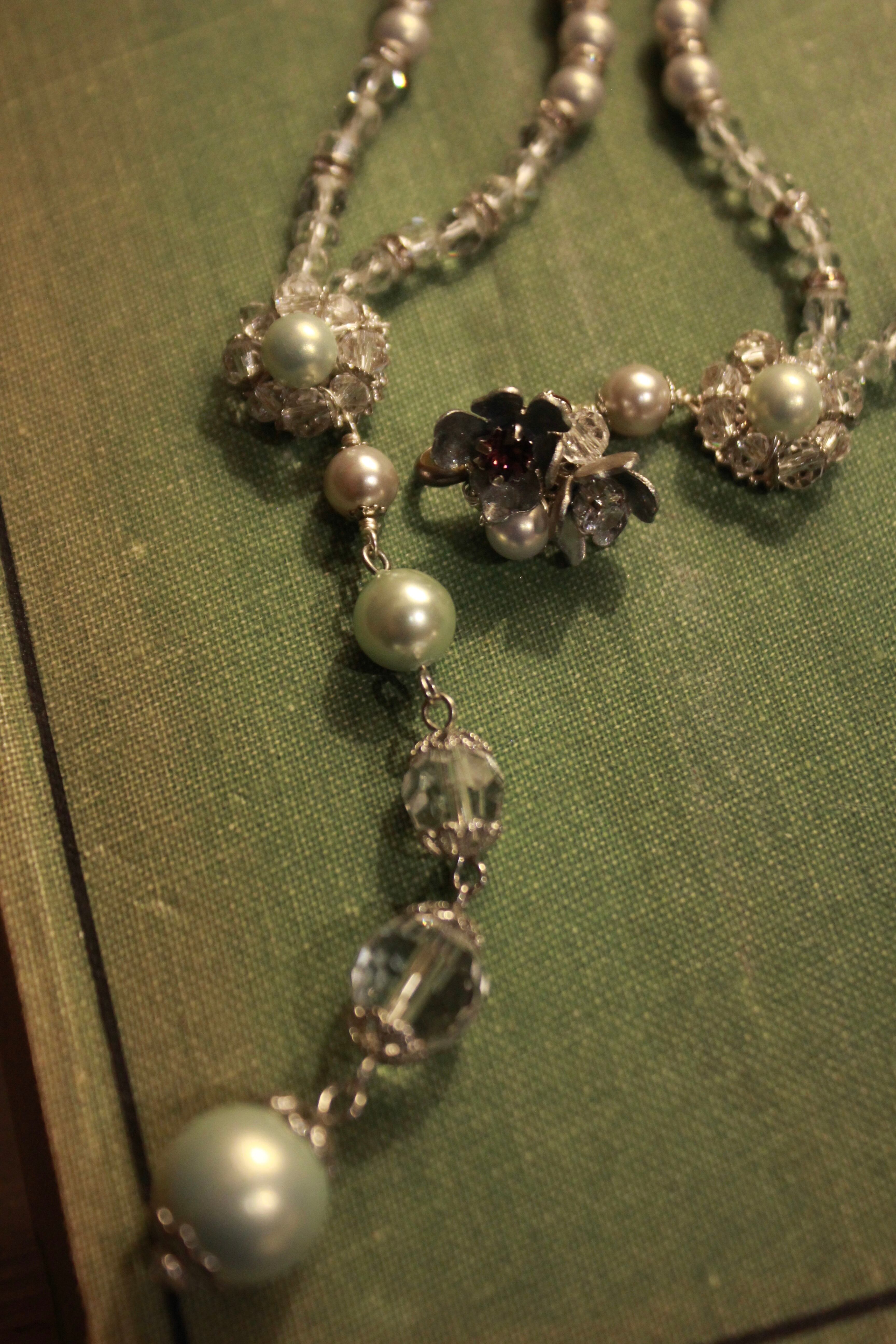 そのモチーフを目立たせるために、ネックのビーズは細めグラデーションにしました。
