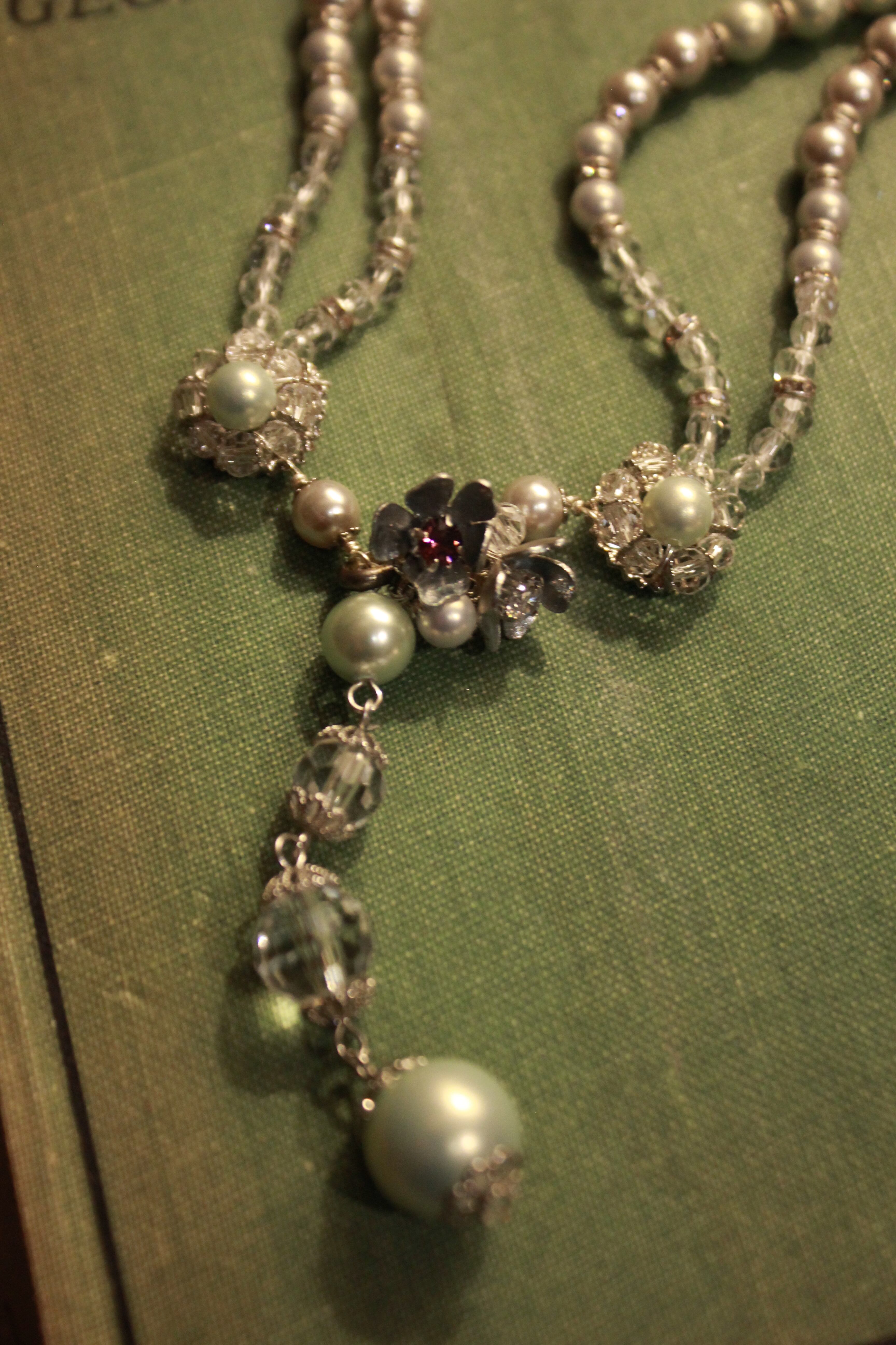 真ん中のモチーフの房の先端が綺麗に、胸元へスッと抜けていくようなシルエットを心がけました。