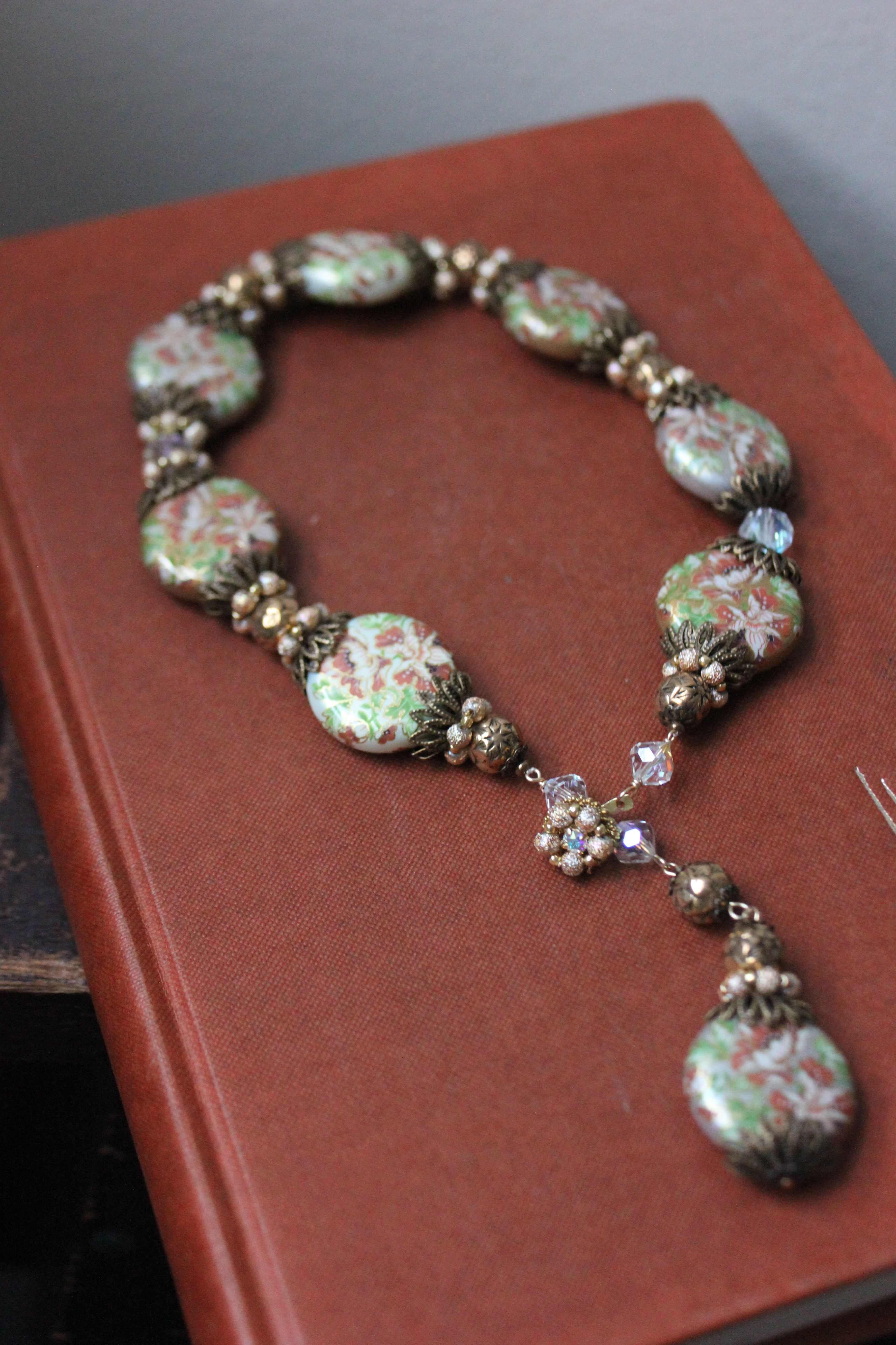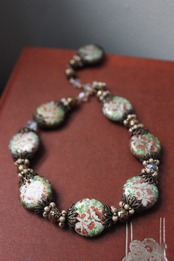 今回は、その小さな鼻煙壺のイメージとピッタリあった和柄の転写ビーズをメインに仕立てました。